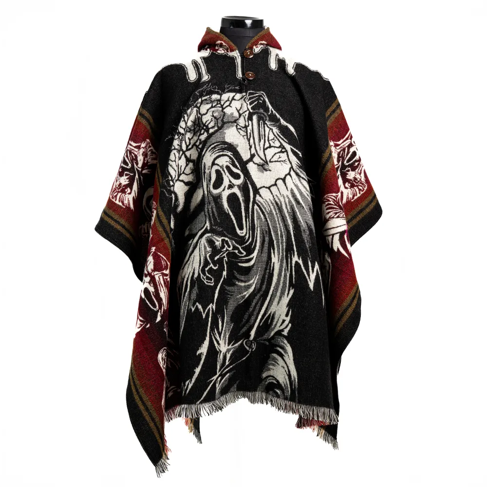 Horror Inspired Alpaca Poncho Wholesale Handmade Ecuadorian Unisex Artisanal Fashion