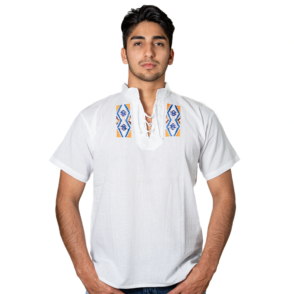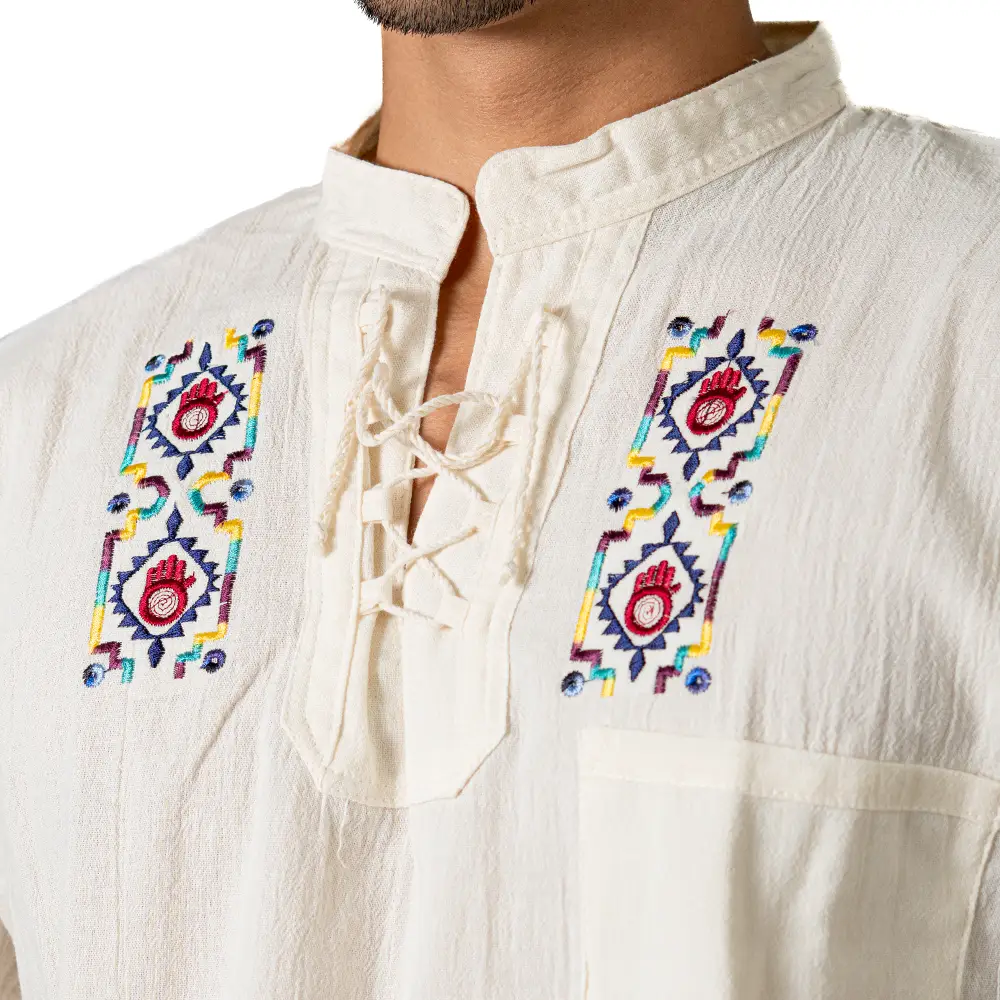 Wholesale Ecuatoriana Embroidered Cotton Shirt Boho Festival Style Guayabera Inspired