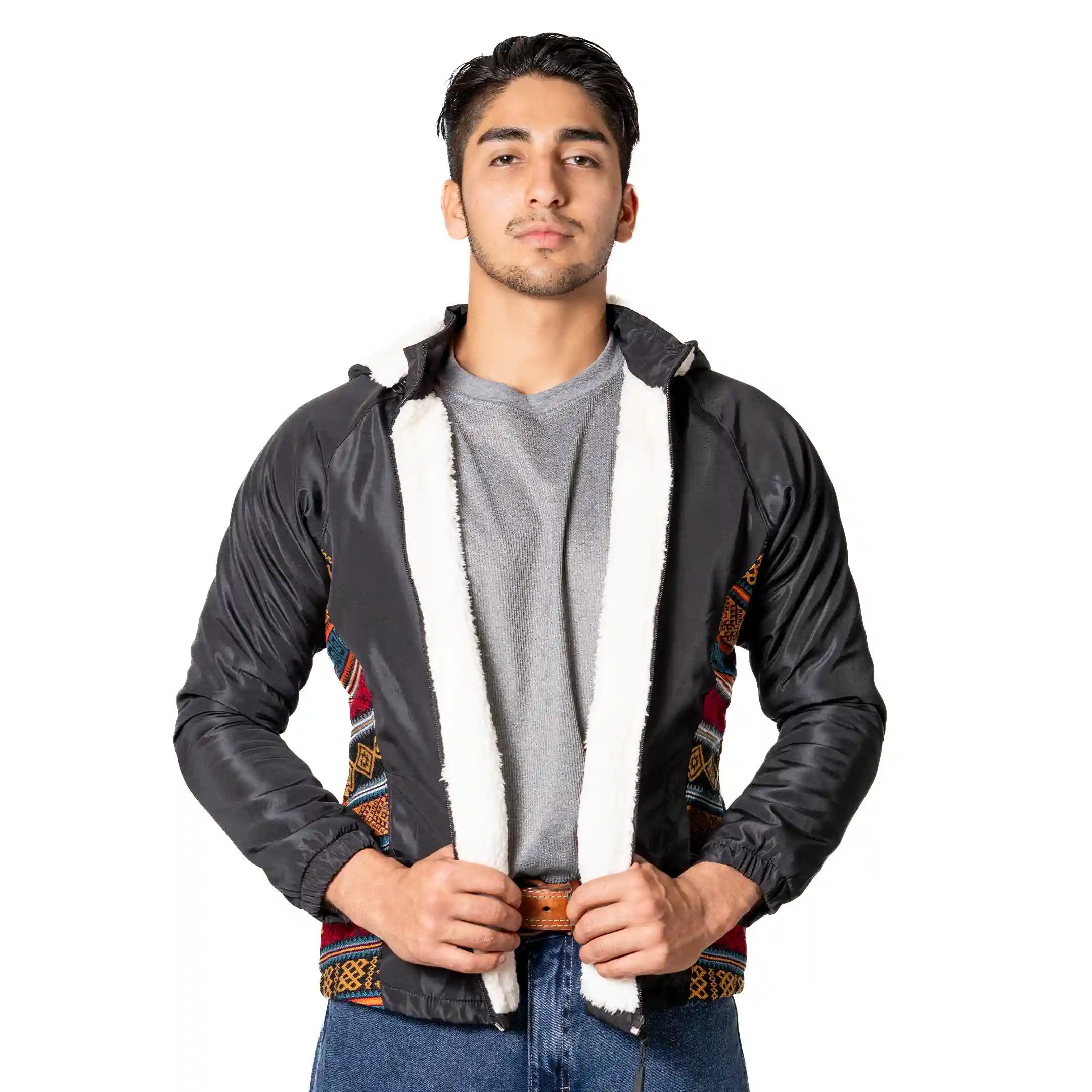 Black Andean Waterproof Jacket with Geometric Designs Wholesale