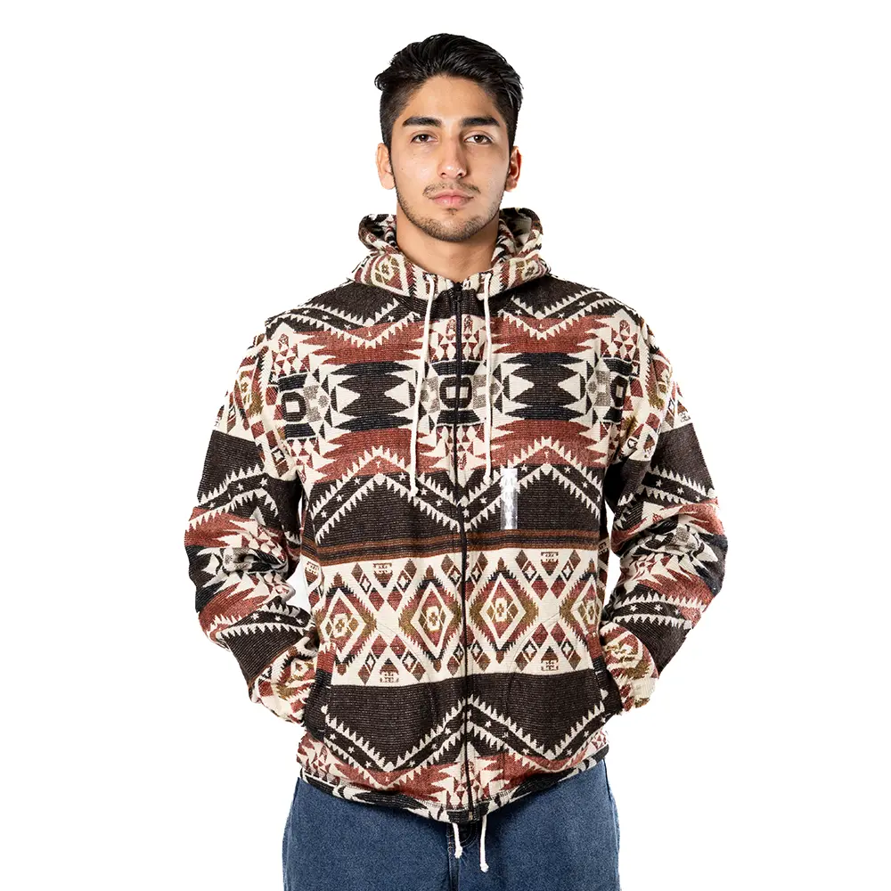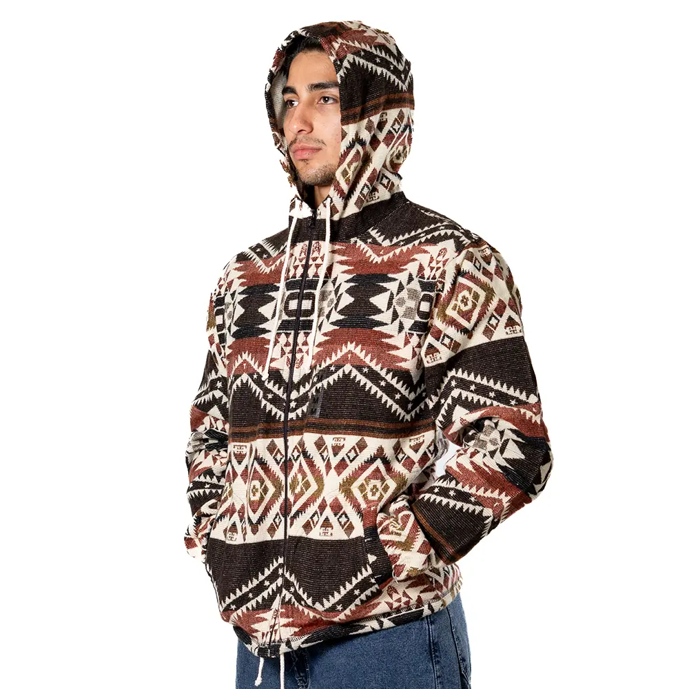 Each hoodie features authentic Andean tribal geometric patterns inspired by the Chakana, making every piece unique. Available in assorted colors and designs, with customization possible upon request (details provided internally). With its hood, zipper, and front pocket, this hoodie is both practical and stylish.