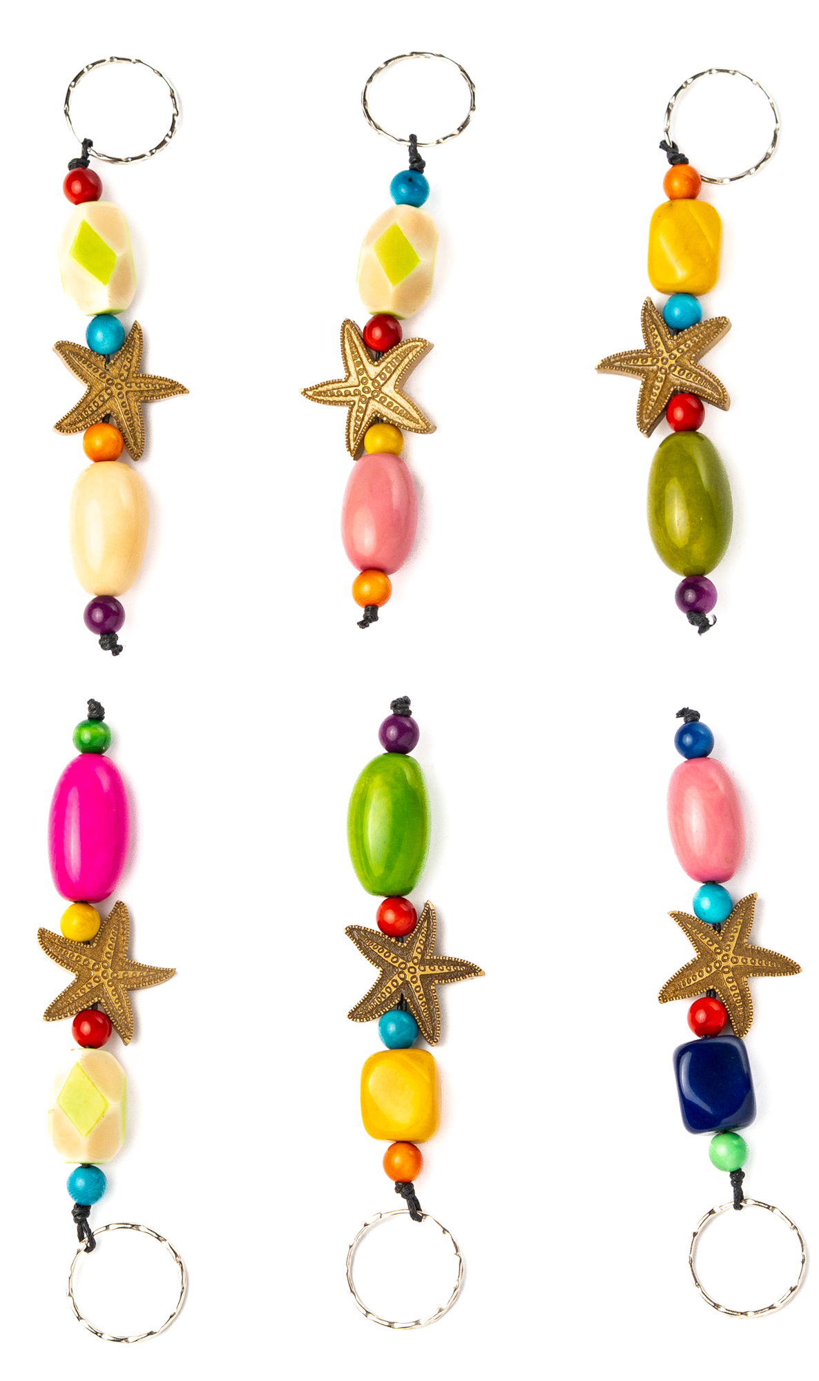 Each order includes a mix of colorful keychains in various shapes and tones, depending on artisan availability.