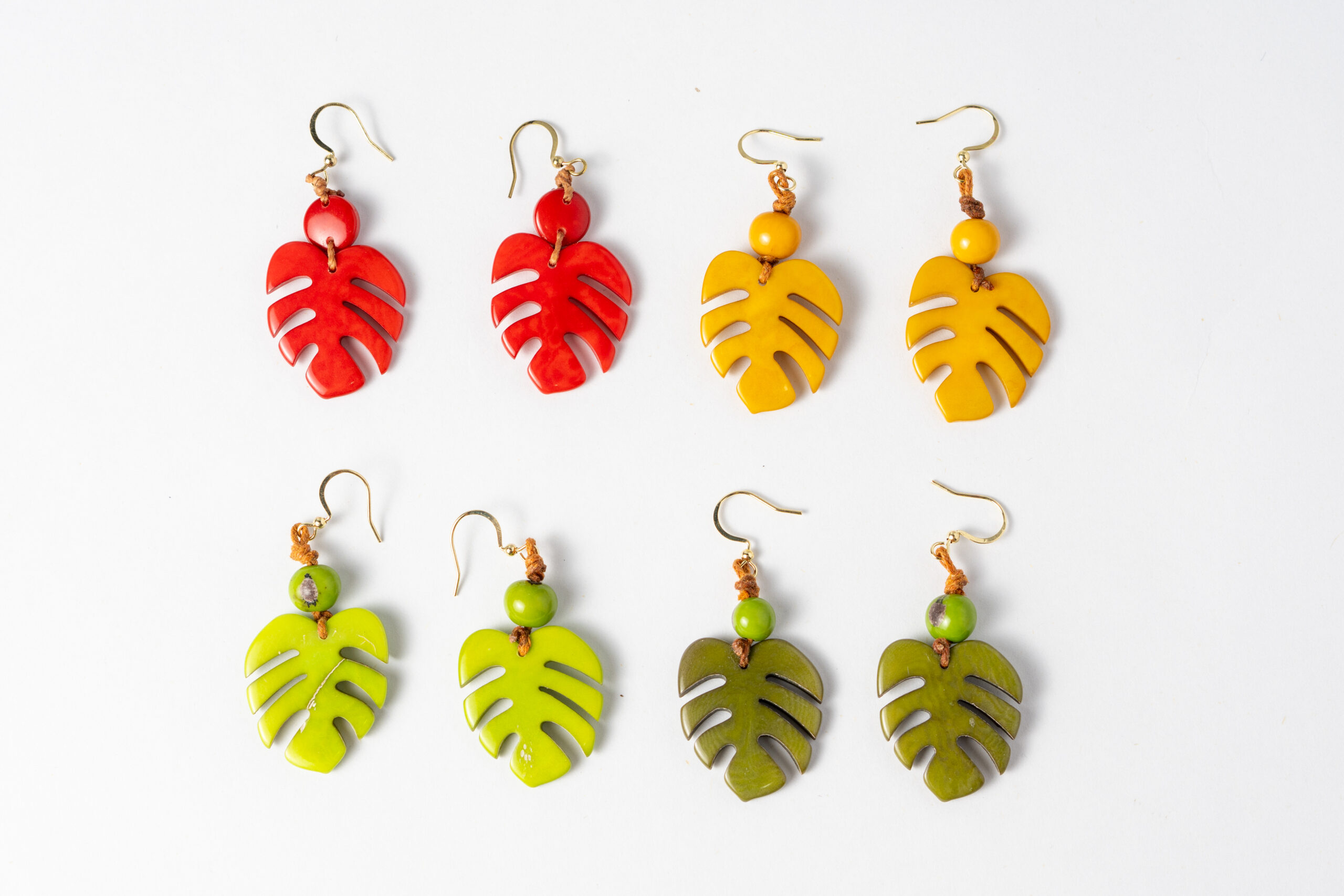 Tagua Leaf Earrings Wholesale, Bring a tropical and ecofriendly flair to your accessories collection with our Handcrafted Tagua Leaf Earrings, skillfully made in Ecuador from 100% natural tagua nuts, also known as vegetable ivory. These lightweight, vegan earrings feature intricately carved leaf shapes paired with matching tagua beads, available in assorted vibrant colors not just the sunny yellow shown making each pair unique and full of personality.
