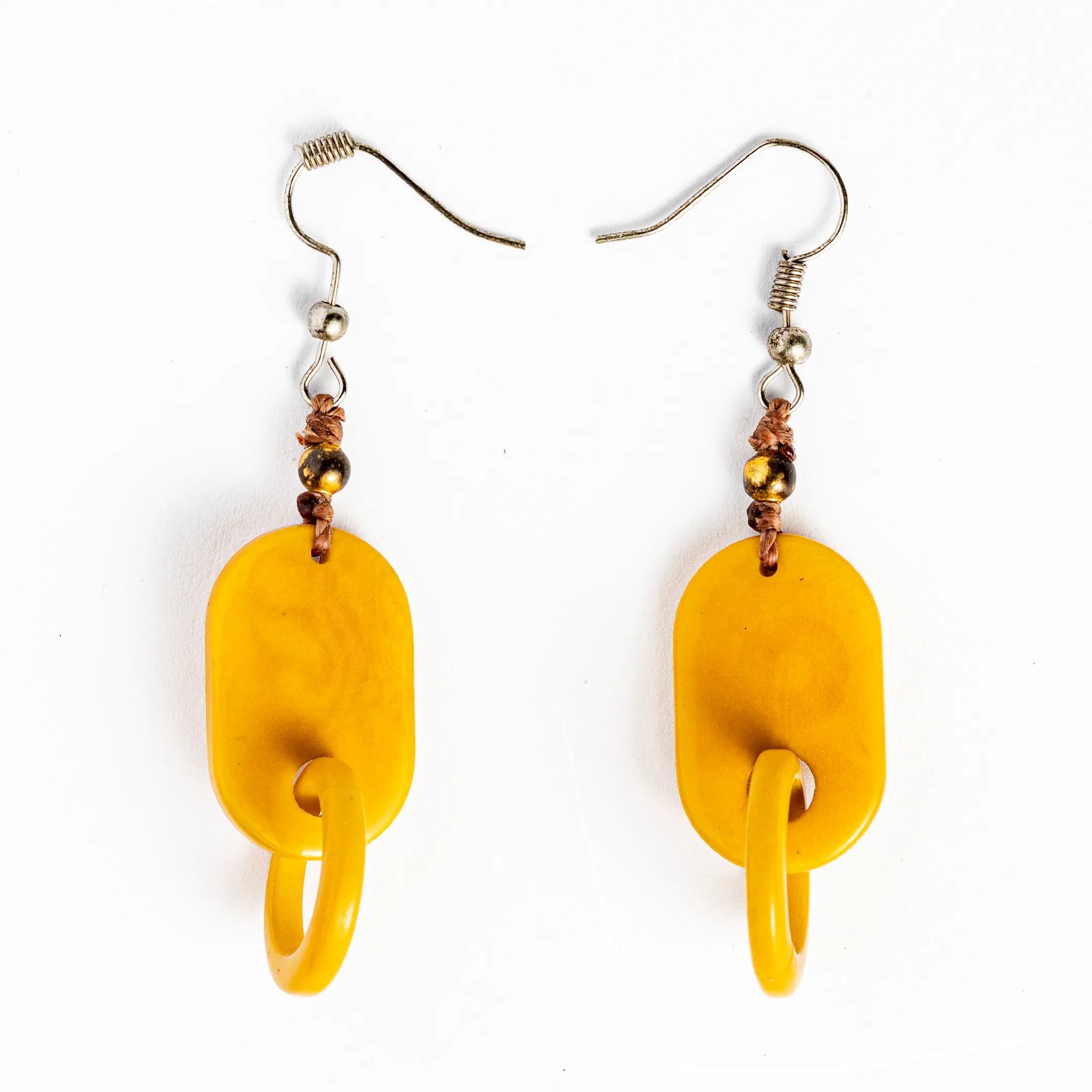 Wholesale Tagua Earrings Geometric Eco Jewelry, Bring bold, eco-conscious style to your boutique with our Wholesale Tagua Earrings, handcrafted in Ecuador from 100% natural tagua nuts, also known as vegetable ivory. Featuring a modern geometric oval-and-ring design, these earrings are lightweight, durable, and completely vegan – a sustainable alternative to plastic or animal-based jewelry.